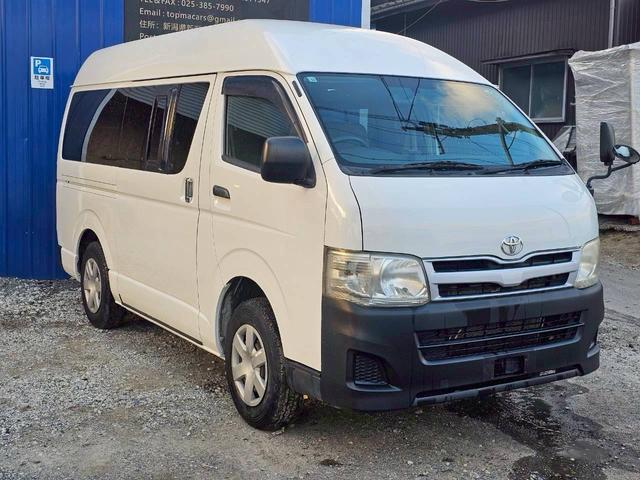 This is a 2010 (Heisei 22) Toyota Hiace Van in the Long DX trim with four-wheel drive, listed on Goo-net by "Top MaCars," a dealership located in Kita-ku, Niigata City, Niigata Prefecture. The listing was last updated on March 28, 2026. Pricing: The total payment is ¥1,850,000 (tax included, including recycling fees), which breaks down to a vehicle price of ¥1,600,000 plus approximately ¥250,000 in miscellaneous expenses. Key Specs: It's powered by a 3,000cc diesel engine paired with an automatic transmission (column-mounted). It has 148,000 km on the odometer, a right-hand drive configuration, and a white exterior. The last three digits of the chassis number are 567. There is no current vehicle inspection (shaken), but statutory maintenance is included in the sale. There is no repair history on record, and no warranty is provided. Equipped Features: The van comes with power steering, power windows, air conditioning, ABS, a driver's-side airbag, dual sliding doors, and keyless entry. Most other features commonly listed (navigation, leather seats, alloy wheels, rearview camera, ETC, dash cam, smart key, LED headlights, driving assistance systems, etc.) are not equipped on this particular unit.