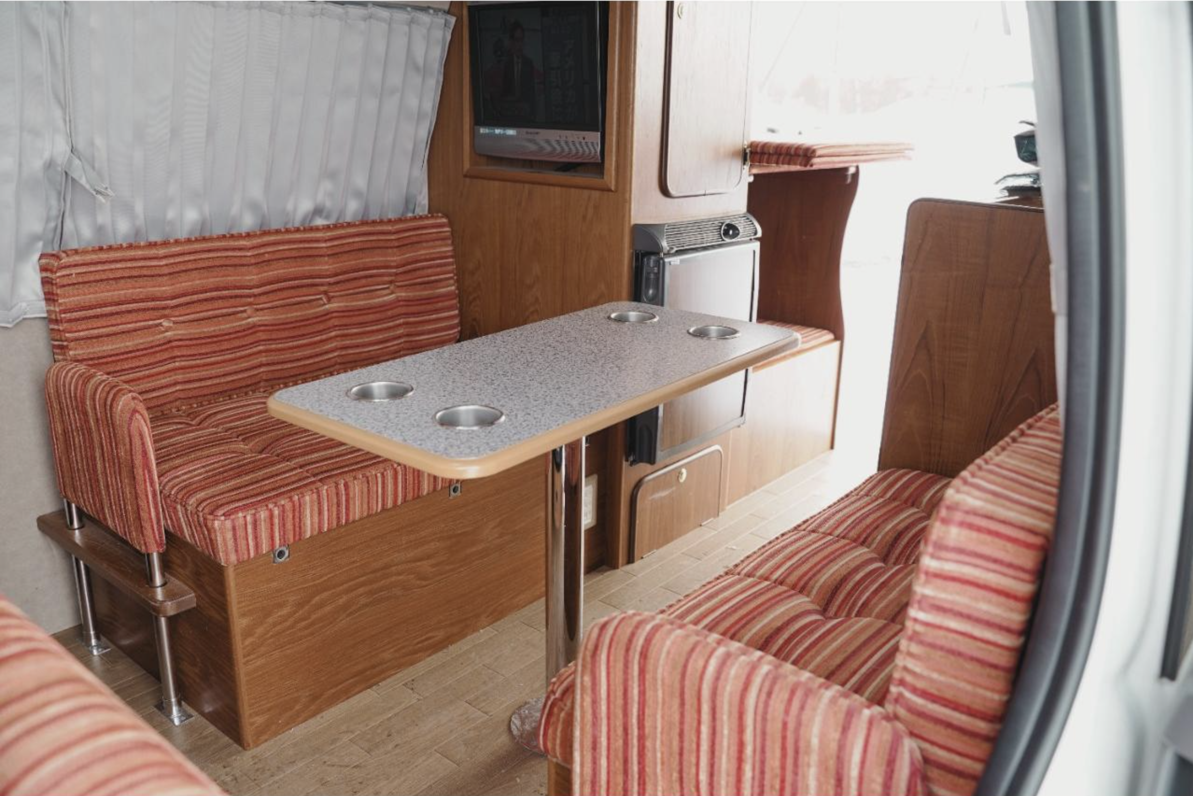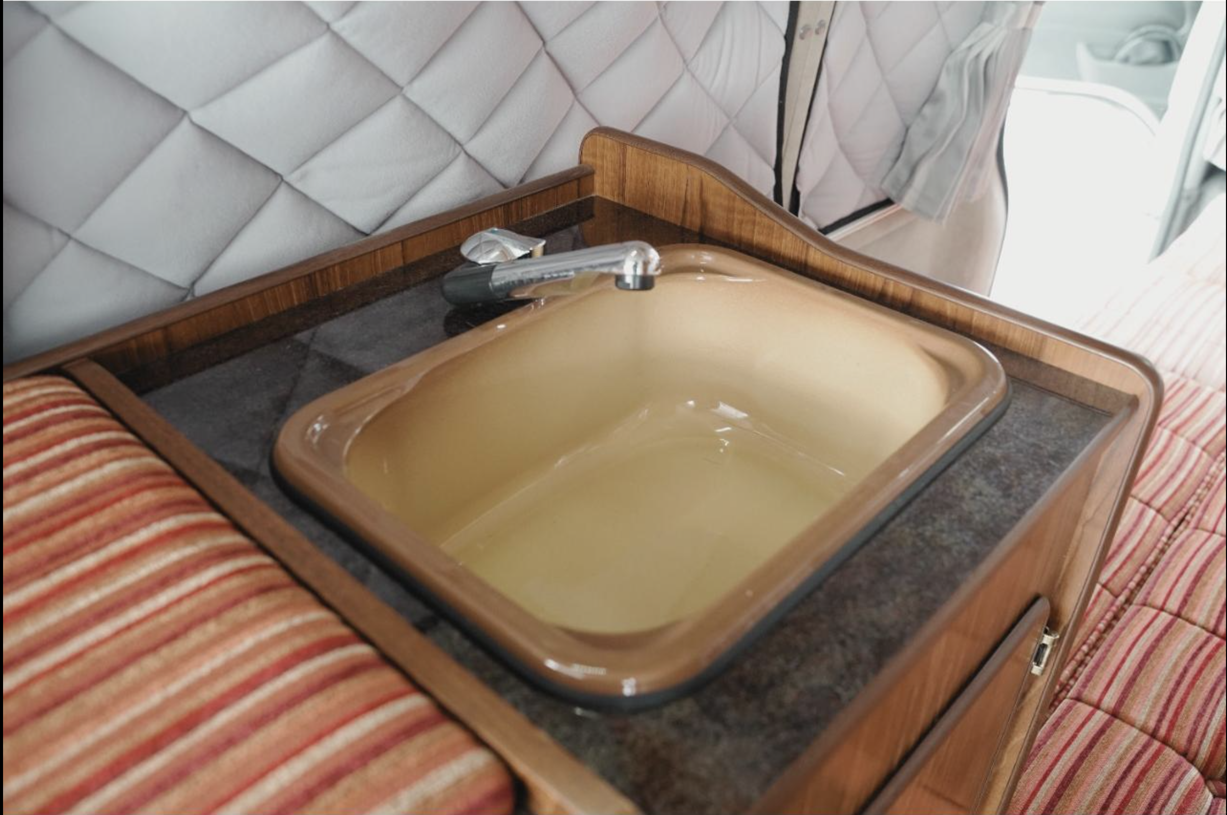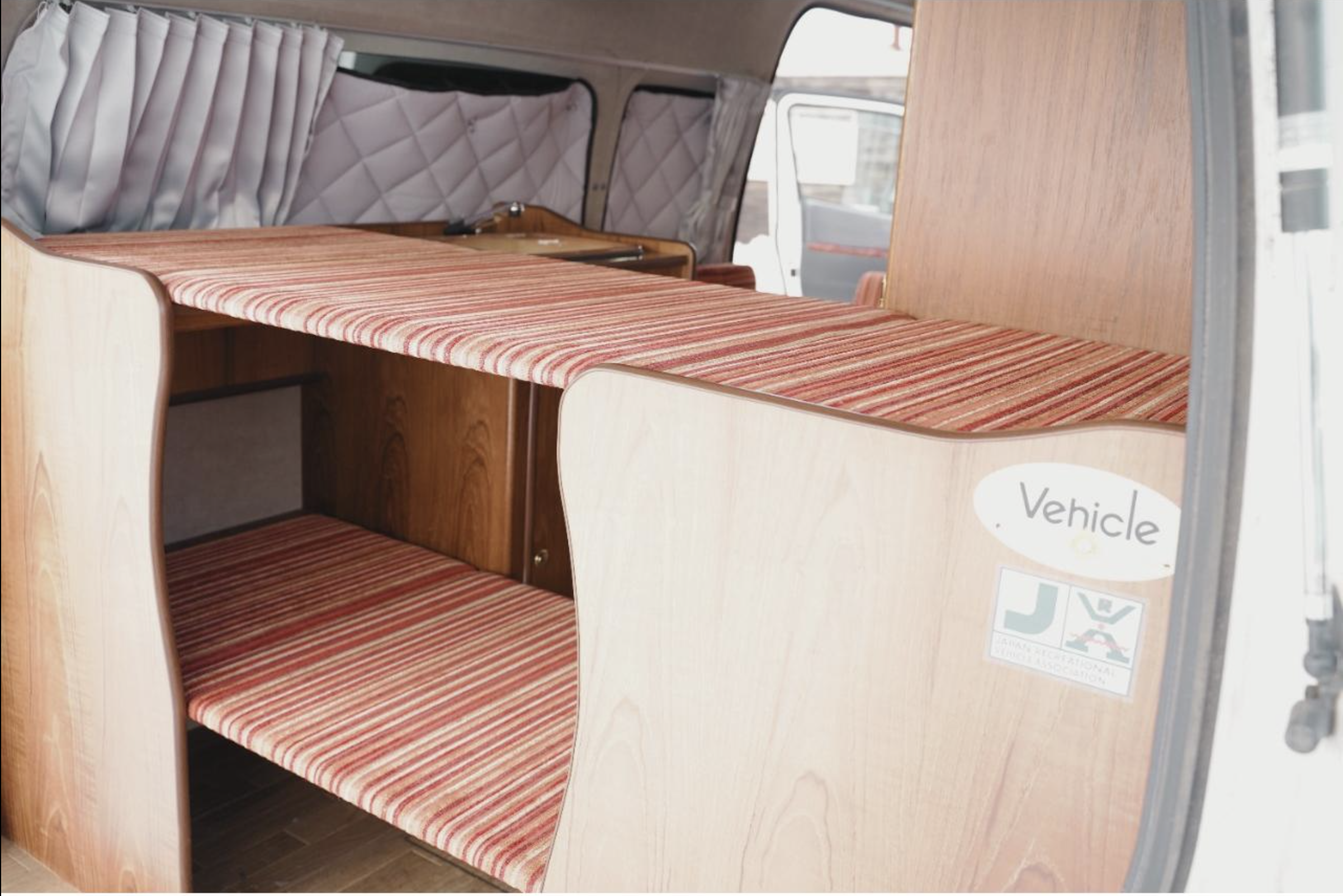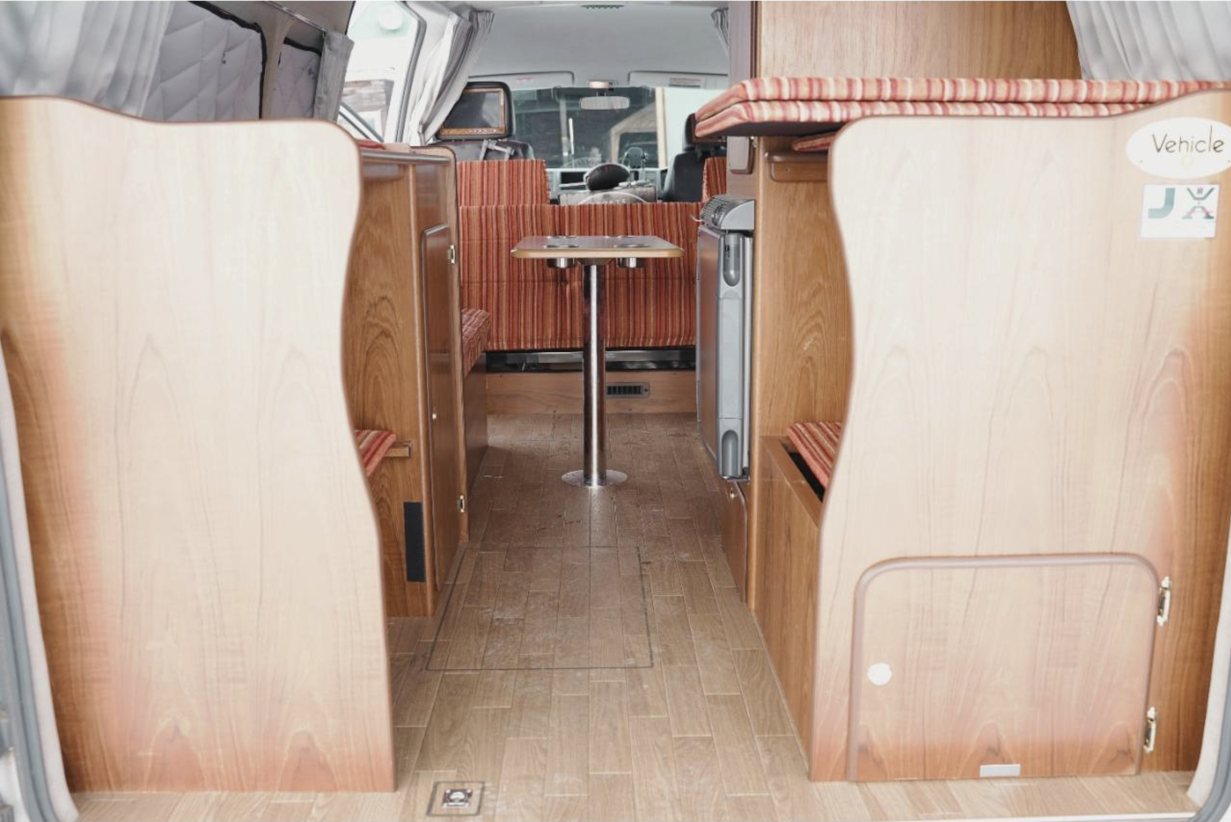 This Van has had a new exterior styling, complete with bull bar, LED light, wheel guards, wheel flats and a tow bar. Plus it sports a beautifully done two tone paint job. The campervan fit out includes a fasp seat, with seatbelts, it also flips into a flat bed. upright fridge and kitchen with a sink and an Awning.